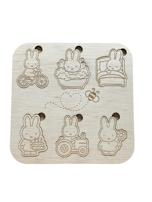 Breng een glimlach op het gezicht van je kleintje met deze educatieve houten Nijntje puzzel.